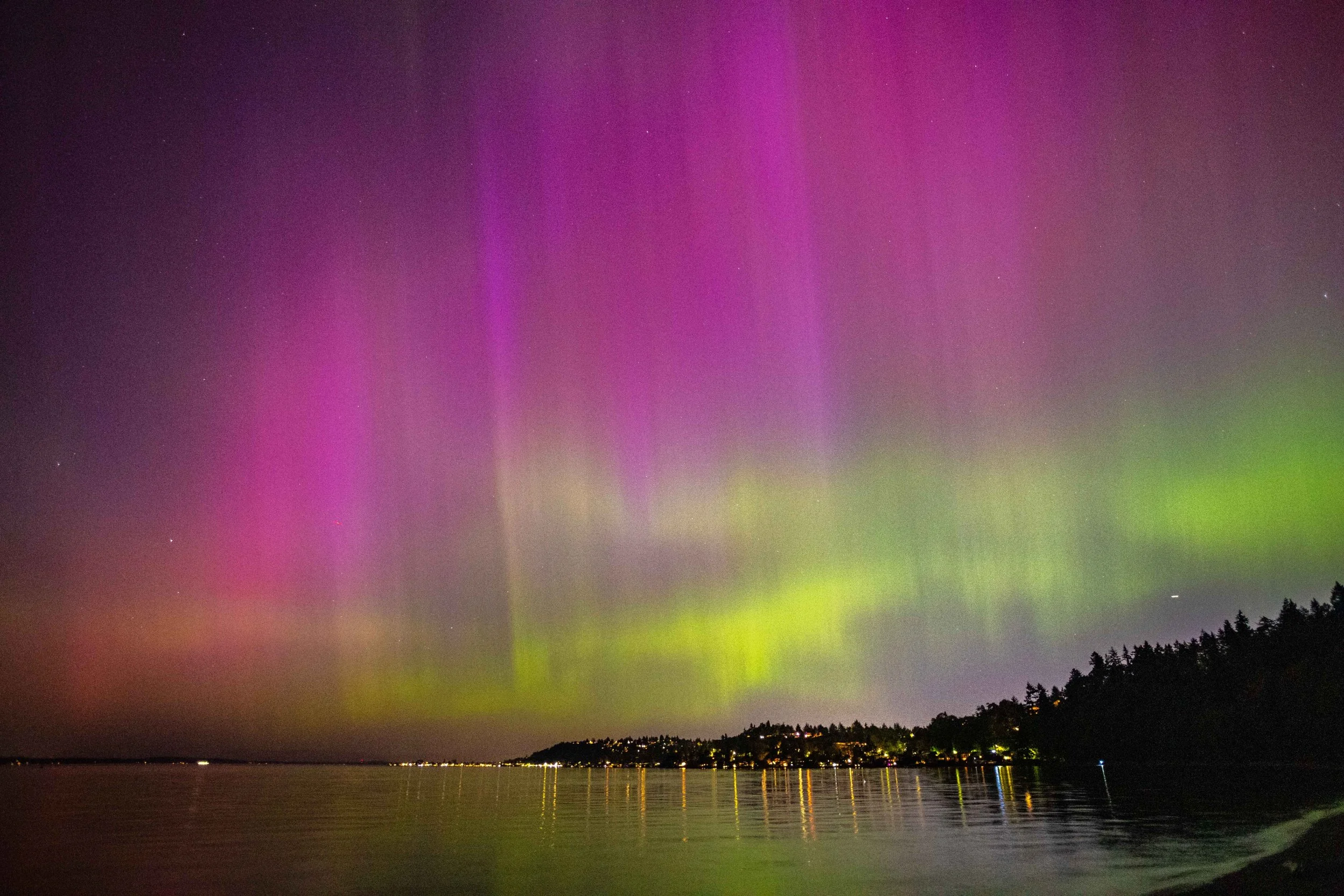 Check for solar flares (NOAA), on a clear night and you just might see an aurora sighting in Seattle!